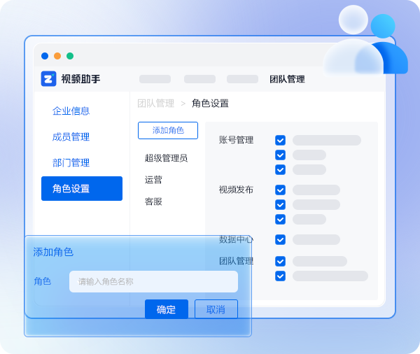 自主创建成员角色,可对其赋予对应权限以及功能,例如支持查看账号的收益、数据,添加相关的自媒体账号等