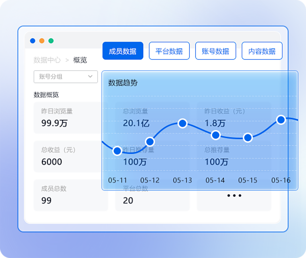监控所有账号的运营情况,可查看明细,数据图表等,也可以导出相关数据,为运营提供有效的数据支持